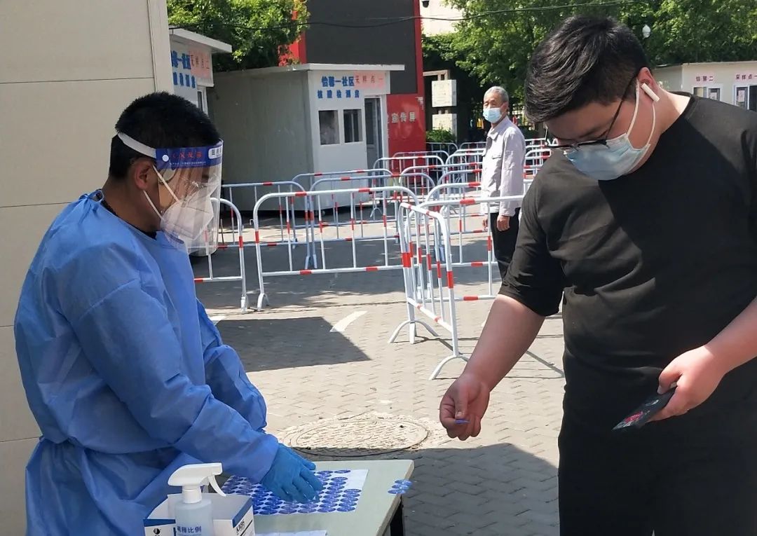 4月29日23:30,北汽財(cái)務(wù)公司的周帥和王偉光分別收到臨時(shí)通知,要求于第二日5點(diǎn)30分上崗,支援馬家堡西里小區(qū)核酸檢測(cè)。小區(qū)居住人口約4500余人,共兩處檢測(cè)點(diǎn),居住人口多,檢測(cè)壓力大。他們作為新手“大白”,迅速投入緊張的防疫戰(zhàn)斗中,參與維護(hù)核酸現(xiàn)場(chǎng)秩序、搬運(yùn)防疫物資、核酸信息錄入等工作,日均工作時(shí)長(zhǎng)超12小時(shí)。